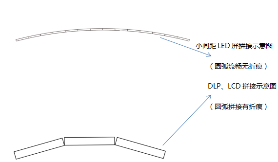 顯示單元尺寸小,拼接成的圓弧過渡流暢,弧度自然,可用于需要獨(dú)特創(chuàng)意的場(chǎng)合。